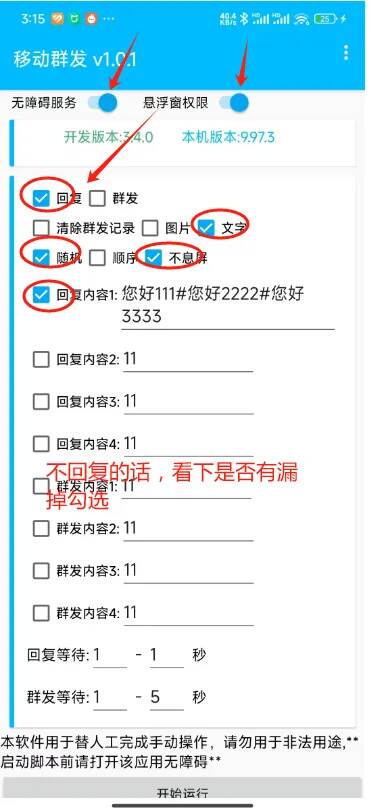 2、回复内容可以用#隔开,每次发一条话术,可以选择随机,或者顺序。